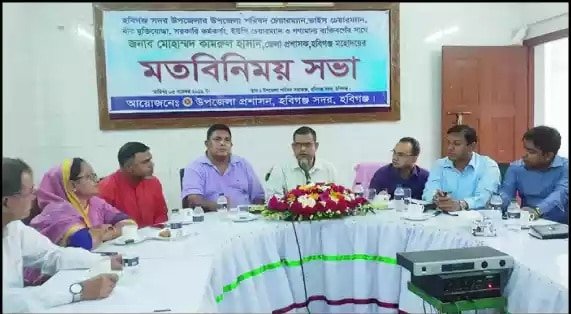 হবিগঞ্জ সদর উপজেলা প্রশাসন ও উপজেলা পরিষদের সাথে মতবিনিময় করেছেন নবাগত জেলা প্রশাসক কামরুল হাসান। মঙ্গলবার বিকেল ৩ টায় উপজেলা প্রশাসনের সম্মেলন কক্ষে এ মতবিনিময় সভা অনুষ্ঠিত হয়। এতে উপস্থিত ছিলেন স্থানীয় সরকার উপ-পরিচালক মোঃ নুরুল ইসলাম, উপজেলা চেয়ারম্যান মোতাচ্ছিরুল ইসলাম, উপজেলা নির্বাহী কর্মকর্তা সাখাওয়াত হোসেন রুবেল, উপজেলা ভাইস-চেয়ারম্যান মাহবুবুর রহমান আউয়াল, মহিলা ভাইস-চেয়ারম্যান ফেরদৌস আরা বেগম, সদর মডেল থানার ভারপ্রাপ্ত কর্মকর্তা (ওসি) মোঃ মাসুক আলী, জেলা পরিষদের সদস্য মোঃ আব্দুল মুকিত, উপজেলা আওয়ামীলীগের সভাপতি আব্দুল আহাদ ফারুক, ভারপ্রাপ্ত সাধারণ সম্পাদক আব্দুর রহমান, উপজেলা প্রশাসনের কর্মকর্তাবৃন্দ, সকল ইউনিয়নের চেয়ারম্যান ও বীর ম্ুিক্তযোদ্ধাসহ গন্যমান্য ব্যক্তিবর্গ। মতবিনিময় সভায় নবাগত জেলা প্রশাসক উপস্থিত সকলের বক্তব্য মনোযোগ সহকারে শুনেন এবং সদর উপজেলার বিদ্যমান বিভিন্ন সমস্যা সমাধানে ভবিষ্যৎ কর্মপন্থা নির্ধারণ করেন। এর পূর্বে জেলা প্রশাসক কামরুল হাসান উপজেলা পরিষদ প্রাঙ্গনে পৌছলে উপজেলা চেয়ারম্যান মোতাচ্ছিরুল ইসলাম ও উপজেলা নির্বাহী কর্মকর্তা সাখাওয়াত হোসেন রুবেল, ভাইস-চেয়ারম্যান মাহবুবুর রহমান আউয়াল ও মহিলা ভাইস-চেয়ারম্যান ফেরদৌস আরা বেগমসহ উপজেলা প্রশাসন ফুলেল শুভেচ্ছা জানান।