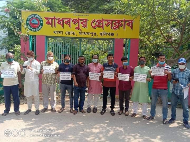 বুধবার (১৯ মে) সকাল ১১ঘটিকা সময় মাধবপুর প্রেসক্লাবের সামনে প্রথম আলো সাংবাদিক রোজিনা ইসলামের মুক্তির দাবীতে মানববন্ধন ও প্রতিবাদ সভা অনুষ্ঠিত হয়, প্রেসক্লাবের সকল সাংবাদিক সদস্যদের উপস্থিতিতে ঘণ্টাব্যাপী মানববন্ধন ও প্রতিবাদ সভায় বক্তব্য রাখেন, মাধবপুর প্রেসক্লাবের সভাপতি মহিউদ্দিন আহম্মেদ,সাধারণ সম্পাদক সাব্বির হাসান (আকাশ) সাবেক সভাপতি রোকন উদ্দিন (লস্কর )যুগ্ম সাধারণ সম্পাদ আলমগীর (কবির) আলাউদ্দিন (রনি)