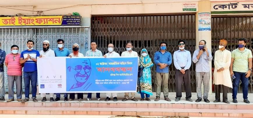 মানববন্ধনে বক্তারা বলেন, মহাত্মা গান্ধীর অহিংস আন্দোলনের চেতনায় উজ্বীবিত হয়ে, সকল প্রকার হিংসা বিদ্বেষ পরিহার করে সহিংসতা মুক্ত সোনার বাংলা গড়ার আহবান জানান।