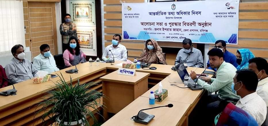 হবিগঞ্জে আর্ন্তজাতিক তথ্য অধিকার দিবস উপলক্ষে আলোচনা সভা ও পুরস্কার বিতরণীর আয়োজন করা হয়। ” তথ্য আমার অধিকার- জানা আছে কি সবার, তথ্য আমাদের অধিকার- জানতে হবে সবার” এই প্রতিপাদ্য বিষয়কে সামনে রেখে মঙ্গলবার (২৮ সেপ্টেম্বর) সকাল সাড়ে ১০টায় জেলা প্রশাসকের সম্মেলন কক্ষে এ সভা অনুষ্ঠিত হয়।