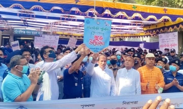 “মুজিব বর্ষে পুলিশ নীতি, জনসেবা আর সম্প্রীতি” এই প্রতিপাদ্য বিষয়ে হবিগঞ্জে কমিউনিটি পুলিশিং ডে উপলক্ষে আলোচনা সভা ও র্যালি অনুষ্ঠিত হয়।