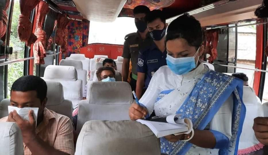 এসময় সরকার নির্ধারিত স্বাস্থ্যবিধি উপেক্ষা করে গণপরিবহনে যাত্রী পরিবহন এবং অতিরিক্ত ভাড়া আদায়ের দায়ে ৪টি মামলা এবং ২হাজার ৭শত টাকা জরিমানা আদায় করা হয়।