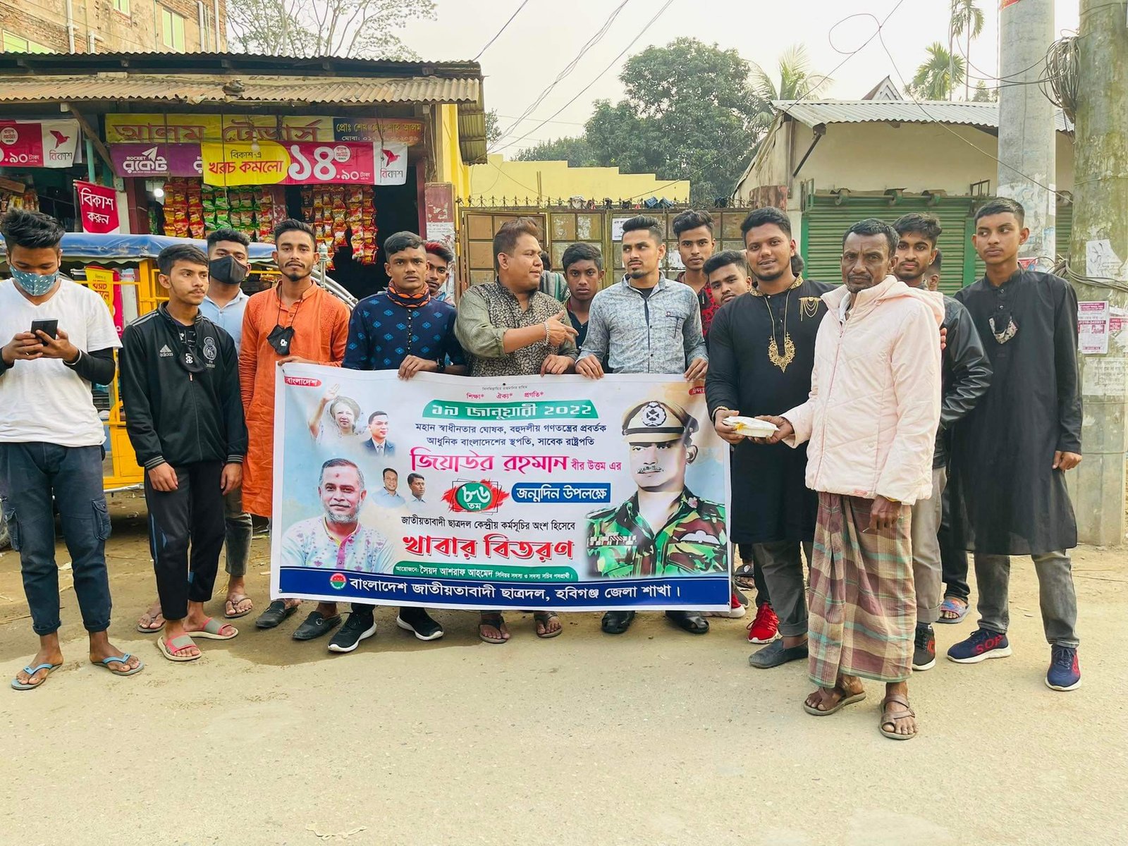 সাবেক রাষ্ট্রপতি জিয়াউর রহমানের ৮৬ তম জন্মদিন উপলক্ষে বাংলাদেশ জাতীয়তাবাদী ছাত্রদল কেন্দ্রীয় সংসদের কর্মসূচির অংশ হিসেবে হবিগঞ্জ জেলা ছাত্রদলের সিনিয়র সদস্য ও সদস্য সচিব পদপ্রার্থী সৈয়দ আশরাফ আহমেদ এর পক্ষ থেকে খাবার বিতরণ।