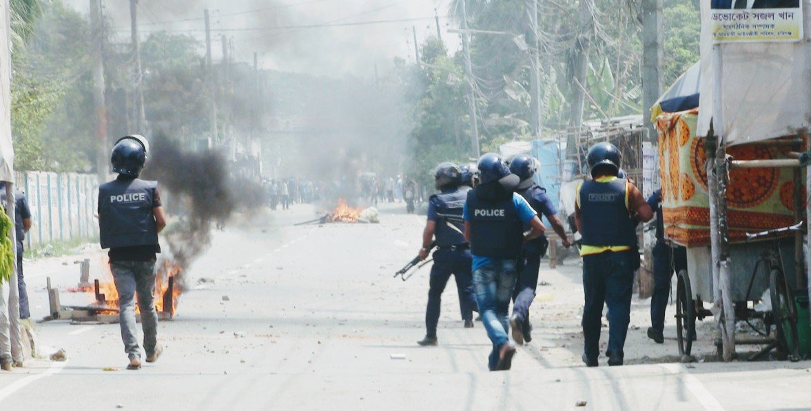 স্থানীয়রা জানান, শনিবার বিএনপির অঙ্গ সংগঠন, যুবদল, ছাত্রদল, স্বেচ্ছাসেবকদলসহ নেতাকর্মীরা হেফাজতের কর্মীদের নিহতের প্রতিবাদে একটি বিক্ষোভ মিছিল বের করে। এ সময় পুলিশ লাঠিচার্জ করলে নেতাকর্মীদের সঙ্গে পুলিশের ধাওয়া পাল্টা ধাওয়া হয়। এ সময় বিএনপির নেতাকর্মীরা ব্যাপক ভাঙচুর ও অগ্নিসংযোগ করে।