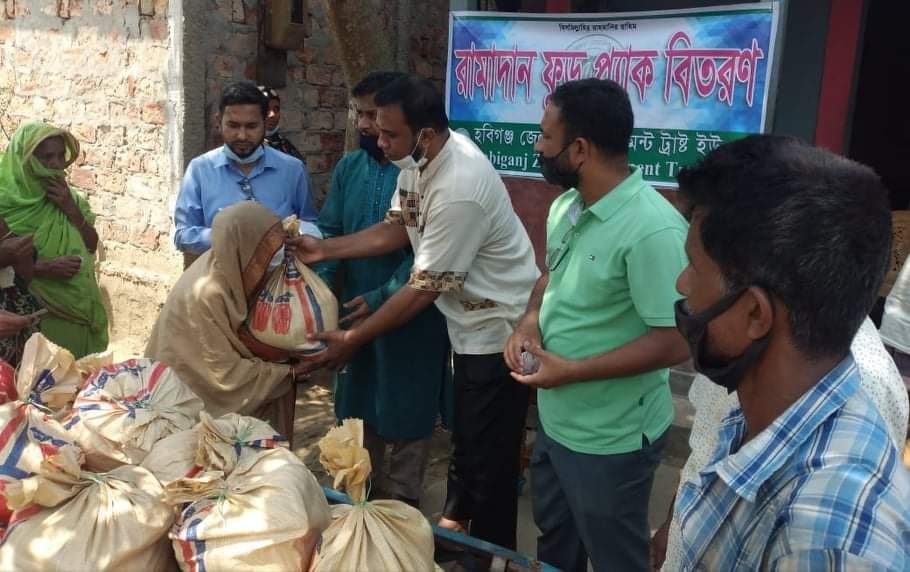 হবিগঞ্জ জেলা ডেভেলপমেন্ট ট্রাস্ট ইউ.কে এর উদ্যোগে হবিগঞ্জ পৌরসভা, হবিগঞ্জ সদর, বানিয়াচং, আজমিরিগঞ্জ, বাহুবল এবং লাখাই উপজেলার প্রায় দুইশত পরিবারের মধ্যে এই ফুড প্যাক বিতরণ করা হয়।