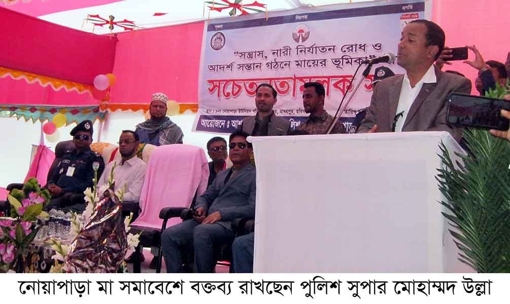 তিনি বুধবার (১৯ শে ফেব্রুয়ারী) দুপুরে হবিগঞ্জের মাধবপুর উপজেলার নোয়াপাড়া ইউনিয়ন পরিষদের মাঠ প্রাঙ্গনে হবিগঞ্জ পুলিশ, বেসরকারি উন্নয়ন সংস্থা আশা ও নোয়াপাড়া ইউনিয়ন পরিষদের যৌথ উদ্দোগে আয়োজিত সন্ত্রাস, নারী নির্যাতন রোধ, আদর্শ সন্তান গঠনে এক বিশাল মা সমাবেশে এসব কথা বলেন।
